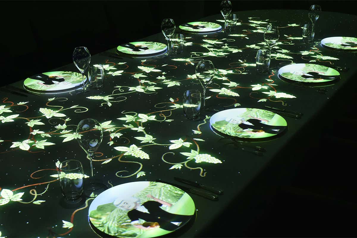 Spettacolari, nel vero senso del termine, le tre serate che si terranno ciascuna per soli 12 ospiti nella sala ovale. Tre cene che si trasformano in un viaggio onirico animato dalla virtual reality Petit R. Un’esperienza immersiva realizzata attraverso un videomapping in 3D e il concetto dell’anamorfosi, dove i disegni dell'artista giapponese Kanako Kuno prendono vita sulla tavola mettendo in scena la storia e il patrimonio di Maison Ruinart.