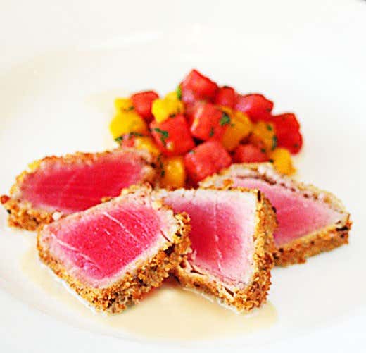 Tataki di tonno rosso con panure di panko, nocciole e cacao - Food Design