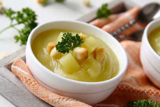 Ingredienti: 5 patate medie, 2 rape, 1 ravanello, 2 cipolle , 2 spicchi d'aglio, 1 litro di brodo vegetale, olio d’oliva q.b., sale e pepe q.b., prezzemolo q.b., crostini.