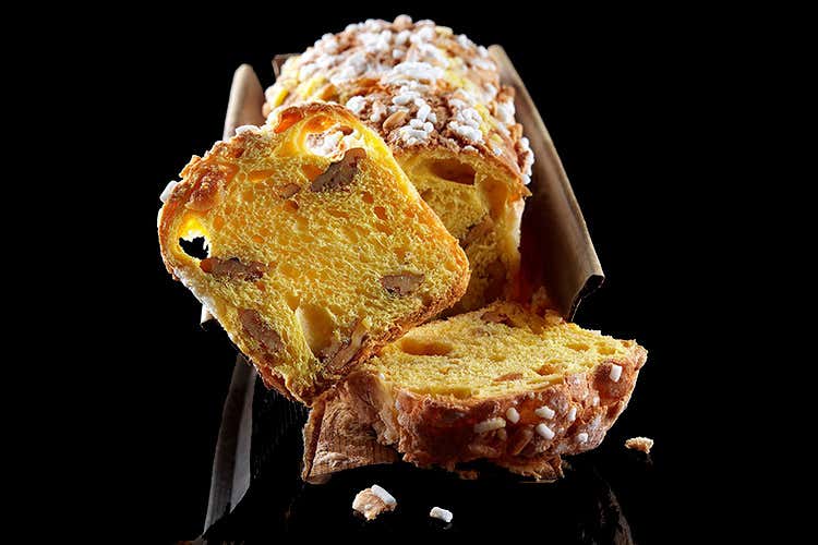 Ingredienti: 550 g farina 00 320w, 230 g zucchero, 420 g burro, 200 g tuorlo, 200 g fichi secchi di Carmignano Dop, 200 g noci, 9 g sale, 110 g lievito naturale, 40 g pasta d’arancia, 40 g miele d’acacia, 1 scorza di arancia grattata, 1 scorza di limone grattata, 1/2 baccello di vaniglia