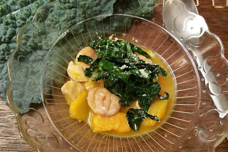 Preparazione: tagliate finemente le foglie di cavolo e cuocete in padella con olio e aggiungendo poca acqua alla volta giusto per non farlo bruciare per pochi minuti. Lasciatelo croccante. Se la costa centrale fosse troppo coriacea eliminatela. Cuocete le castagne con pezzetti di zucca in acqua, un filo d’olio ed aggiustate di sale alla fine cottura. Aggiungete il cavolo e se viaggiava una spolverata di parmigiano o grana.