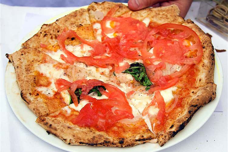 Pizza al forno con Mozzarella di bufala Dop e pomodoro di Sorrento a crudo.