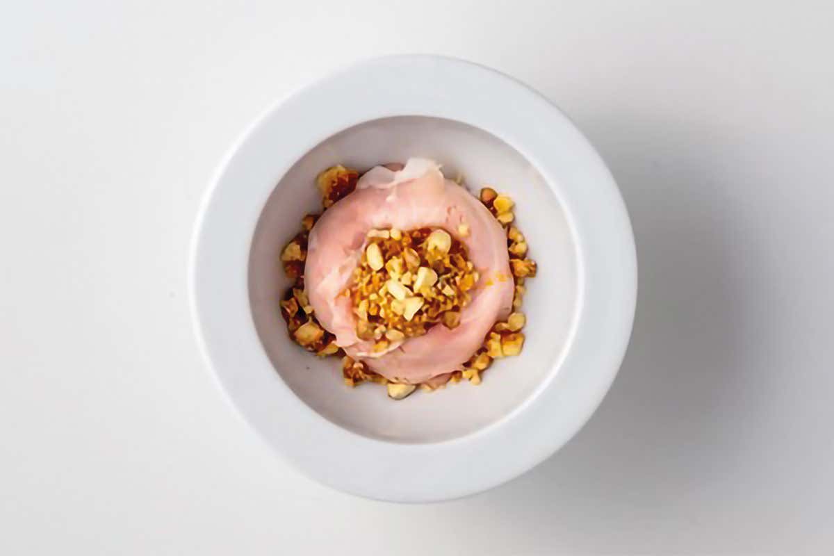 Rigiratela nel piatto, conditela con il ragù di croste di Parmigiano Reggiano e la spuma di piselli.