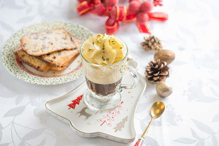 Ad ogni modo, il caffè con spuma alla vaniglia è frutto di un’idea semplice ma geniale, ossia una base di caffè espresso e uno strato di spuma (che essendo più leggera non si mescola con il caffè); infine viene guarnito il tutto con la granella di pistacchi. Il risultato è un dessert buono e dal gradevole impatto visivo. È l’ideale per ogni occasione, ma io lo preparo soprattutto durante le feste natalizie, sia come dessert di fine pasto che come break per accogliere parenti e amici. Per l’occasione, sfodero anche il mio servizio Brandani che, grazie al design sofisticato ed elegante, valorizza le preparazioni di questo tipo e impreziosisce i momenti di convivialità.