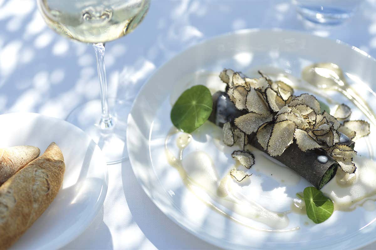 Cannelloni al carbone vegetale, ripieno di magro e salsa allo champagne