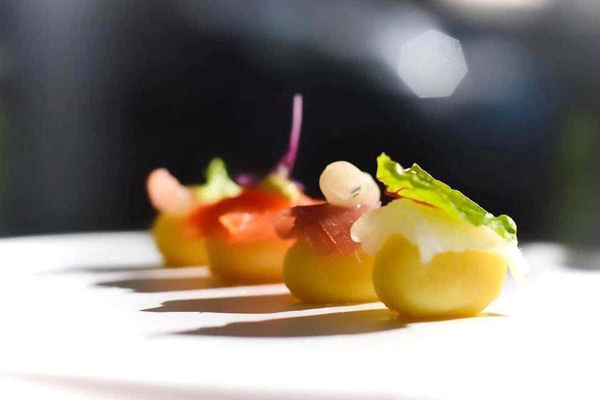 L’idea di questo piatto nasce dalla fusione della causa peruviana e del sushi giapponese, perciò proseguire facendo dei nigiri di patate e adagiarvi il carpaccio di pesce crudo e crostacei terminando con olio extravergine di oliva e fiocchi di sale.