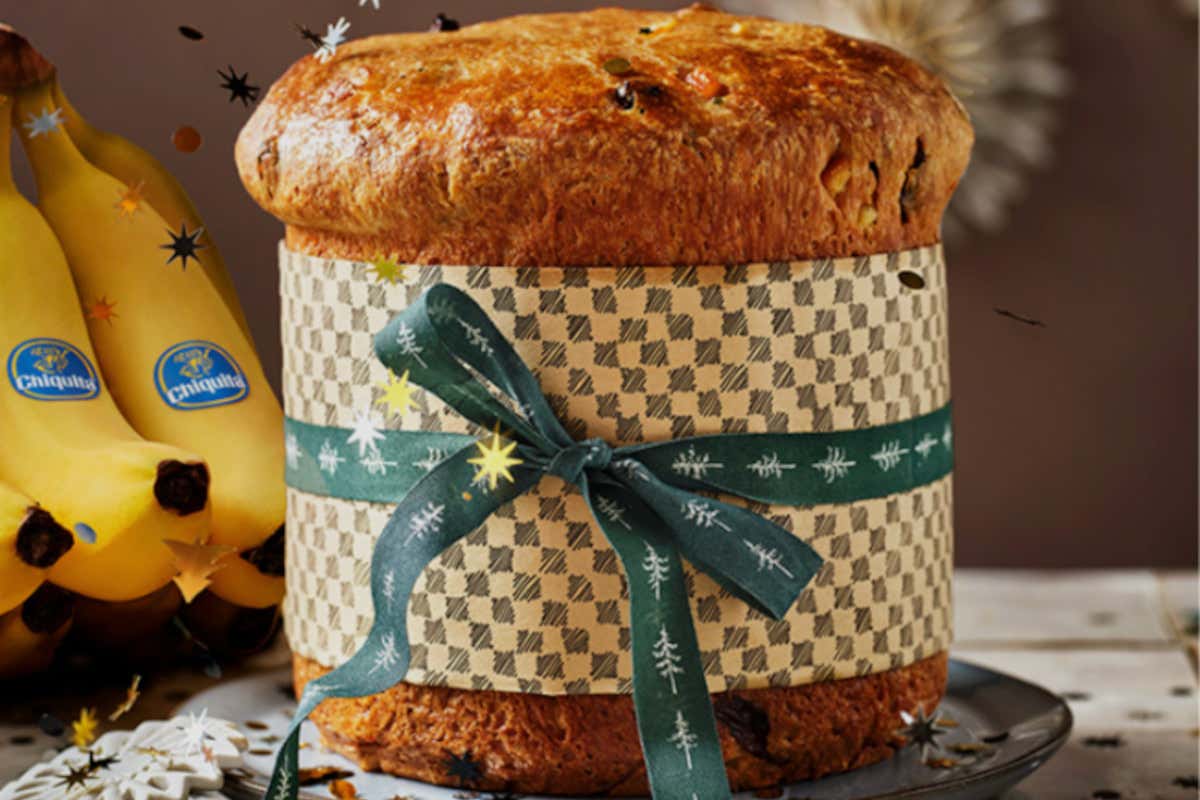 La ricetta di Natale del panettone alla banana di Chiquita. Una variante originale del classico dolce natalizio, con un tocco esotico e fruttato. L’impasto soffice e profumato combina la dolcezza naturale della banana con l’aroma agrumato delle scorze di limone e arancia.