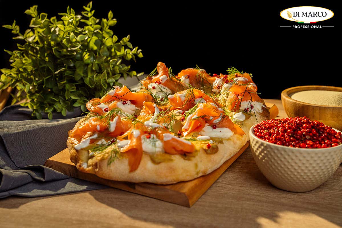 La Pinsa Di Marco ricetta Fumé è saporita e sfiziosa. Grazie all’impasto leggero e digeribile, sazia senza appesantire e unisce il piacere dell’effetto croccante fuori e morbido dentro della pinsa, con le diverse sfumature di gusto degli ingredienti a crudo.