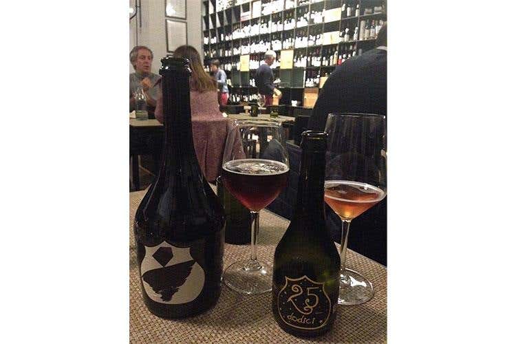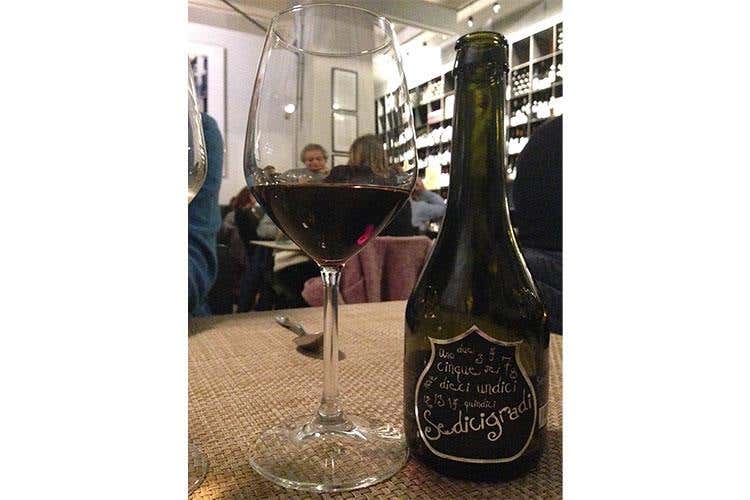 L’equilibrista sospeso tra il mondo del vino e quello della birra, realizzata con metodo Champenoise dopo una fermentazione unica di mosto di birra (Duchessa) e di Sangiovese, scelta per le Costine di maialino di cinta in terrina croccante, salsa barbecue alla birra e insalata di rape in marinata acidula, la Sedicigradi con i suoi sedici gradi alcolici e sedici mesi di maturazione ed invecchiamento in barrique ha accompagnato il risotto con pastinaca e radici di prezzemolo, cotechino sgranato croccante e olio al peperoncino. La dolce chiusura è stata affidata alla 25 dodici, anteprima natalizia, con il panettone, zabaione e gel alla birra e melograno.