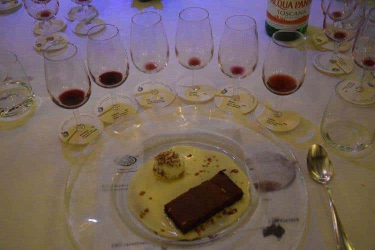 Si chiude la serata e così il nostro giro del mondo dei vini rossi, insieme a una torta al cacao fondente e gelato alla mandorla.
