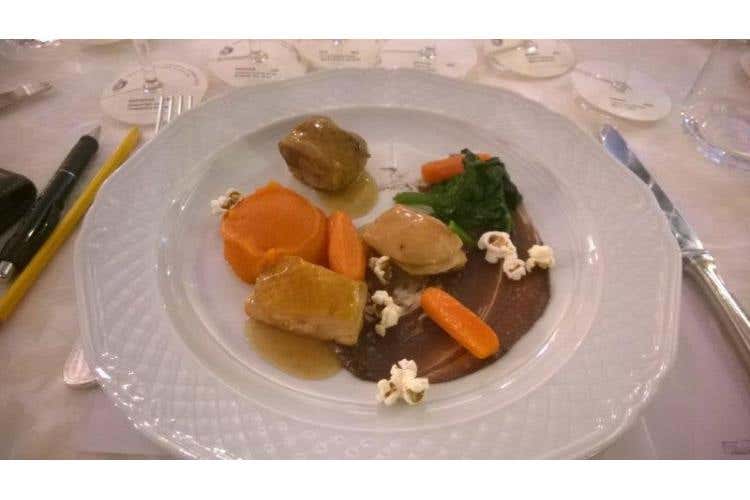 Nel ricordare il grande lavoro svolto dai sommelier di sala, che hanno servito i vini ad una temperatura di servizio ottimale, rendendo questa degustazione davvero unica, la cena raggiunge l’apice con il piatto di carne: faraona su salsa di fegatini e coniglio, con cioccolato, mousse di carote e... pop corn. Una prelibatezza che ci riporta nel vecchio continente per scoprire in Spagna un vitigno molto importante: il Tempranillo, le cui uve hanno la tendenza a maturare precocemente.
