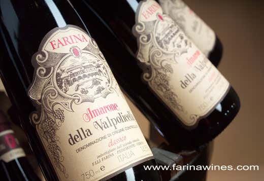 Non conoscevo l’azienda Farina sino a che un amico titolare di un'agenzia per la vendita di vini e liquori al settore Horeca (faccio nome e cognome: Giancarlo Colombo, sede in Brianza a Correzzana, distribuzione nelle province di Milano, Monza-Brianza e Lodi) non mi regala un cartone con sei bottiglie di Amarone Classico della Valpolicella, annata 2012, produttore appunto Farina, cantina a Pedemonte (Vr). Dopo l’assaggio non posso che telefonare all’amico e dirgli la mia soddisfazione: dal bicchiere si liberano riflessi granati, il vino trasmette calore, profuma di amarena e prugna, ottimo sulle carni ma anche su formaggi stagionati. Un ottimo compagno per brindare a tutte le ore. Un Amarone evoluto, stile classico ma con maggiore morbidezza.