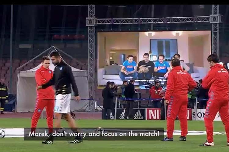 Qualcuno ha già provato il servizio: sullo schermo appare Marek Hamšík che sorride, a quanto pare molto soddisfatto. L’immagine torna sui quattro tifosi inquadrati all’inizio, schierati su un divano per godersi la partita e appare ora evidente che sono loro i “Guardian Fans” invitati a vedere la partita a casa del capitano azzurro.