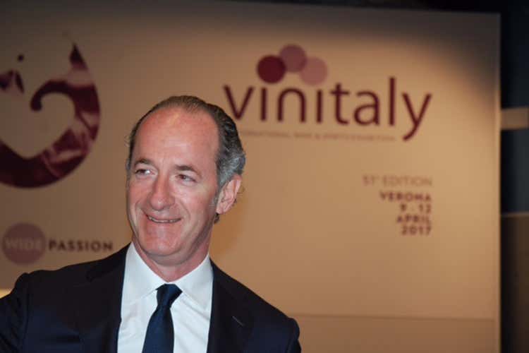 Luca Zaia inaugurando a Verona la 51ª edizione del Vinitaly insieme al ministro