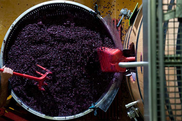 La vinificazione in rosso è caratterizzata dalla macerazione, cioè dal contatto più o meno prolungato delle vinacce con il mosto che si sta trasformando in vino: questo permette la dissoluzione dei pigmenti contenuti nelle bucce, oltre che di altre sostanze estrattive che caratterizzano il prodotto finale. La pigiatura, soprattutto per i vini pregiati, viene eseguita in modo soffice per evitare l’estrazione dalle vinacce di una quantità eccessiva di tannini e la formazione di una elevata quantità di fecce.