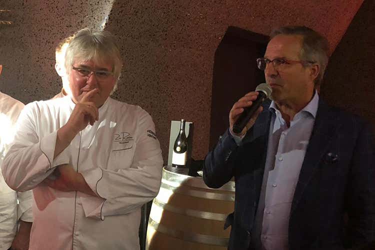 A sottolineare il forte carattere di territorio dei vini di Cantina San Michele, le portate della cena di anteprima di Appius 2014 sono state abbinate a etichette dell’azienda altoatesina: il “Salmerino marinato, arancia, finocchio”, interessante per il taglio dei filetti, è stato servito con il Vino del Centenario 1907-2007 (la prima sperimentazione storica e di successo di Terzer con i blend); a seguire una delicatissima “Zuppa alle castagne, cavolini di Bruxelles, formaggio di malga” con Appius 2010 (il primo della serie); poi un “Risotto con variazione di verdura” insieme al Sauvignon The Wine Collection 2015; per secondo una sorprendente “Sogliola fritta alle erbe, patate, salsa ai capperi e limone”, gustosa e con una straordinaria texture, in abbinamento all’etichetta protagonista della serata, Appius 2014; in chiusura il “Tortino al cioccolato bianco, mela cotogna, gelato alla cannella” con Sanct Valentin Comtess 2017.