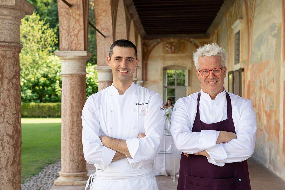 Un viaggio goloso con menu tematico "Cioccolato & Grappa" creato a quattro mani da Ernst Knam e da Edoardo Fumagalli, chef stellato di Locanda Margon e socio Euro-Toques, con degustazione di Grappe Segnana condotta con mano sapiente da Marcello Lunelli, l'enologo di casa Ferrari che ha ereditato la passione per i distillati da papà Franco, e dal mastro distillatore Mirko Scarabello. "Piacere Distillato", progetto nato da un'amicizia e stima reciproca tra la famiglia Knam e la famiglia Lunelli, è la prima tappa di un progetto di più ampio respiro che coinvolgerà lo chef maitre chocolatier Ernst Knam e la grappa Segnana per la gioia dei molti appassionati di grappa e cioccolato.