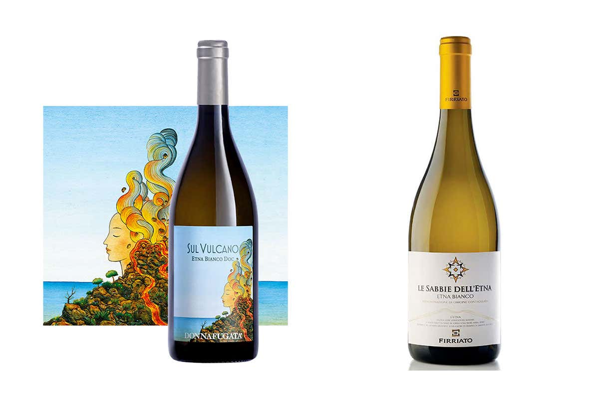 Rimaniamo su “A Muntagna” per l’annata 2020 de Le Sabbie dell’Etna di Firriato, etichetta storica della produzione etnea della famiglia Di Gaetano. In questo caso non si tratta né di un Carricante in purezza né di un vino di contrada ma di un blend di Carricante e Catarratto con uve provenienti da più contrade, per ottimizzare la variabilità vendemmiale ed ottenere un bianco capace di presentarsi con un proprio carattere identificativo, stabile nel tempo. I grappoli, per scelta, non vengono diraspadati e la fermentazione avviene in acciaio, cui segue un affinamento di almeno un anno in bottiglia. Nel calice il giallo paglierino con riflessi verdognoli apre ad un olfattivo dove la componente floreale di mimosa, ginestra e margherita di campo, si fonde alle note fruttate di pesca bianca, pera Williams e agrumi, dando vita ad un vino dinamico, di spiccata freschezza e sapidità. Molto versatile sul fronte abbinamenti è a suo agio con la cucina fusion e con quella orientale.