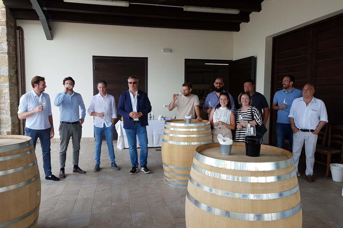 Eccola la squadra: David Buzzinelli Azienda Buzzinelli fondata 1937, Paolo Corso enologo dell'azienda Tenuta Borgo Conventi, fondata nel 1975, Luca Raccaro dell’Azienda Raccaro fondata nel 1928, Alessandro Pascolo dell’Azienda Pascolo, fondata nel 1974, Pietro Berté, dipendente dell'Azienda Gruppo Italiano Vini, Matteo Livon dell’azienda Azienda Livon (fondata nel 1964), Sasa Radikon dell’azienda Radikon (nata nel 1980), Andrea Drius dell’azienda Terre del Faet da lui fondata nel 2012, Elija Muzic dell’Azienda Muzic (fondata nel 1963), Fabjan Korsic dell’Azienda Korsic (nata nel 1969), Martin Figelj dell’Azienda Fiegl viticoltori (dal 1782), Michele Tomba dell’azienda Bolzicco, fondatga nel 1964, e per ultima la più piccola, ma non per questo non meno preparata, Tereza Keber quinta generazione dei Keber.