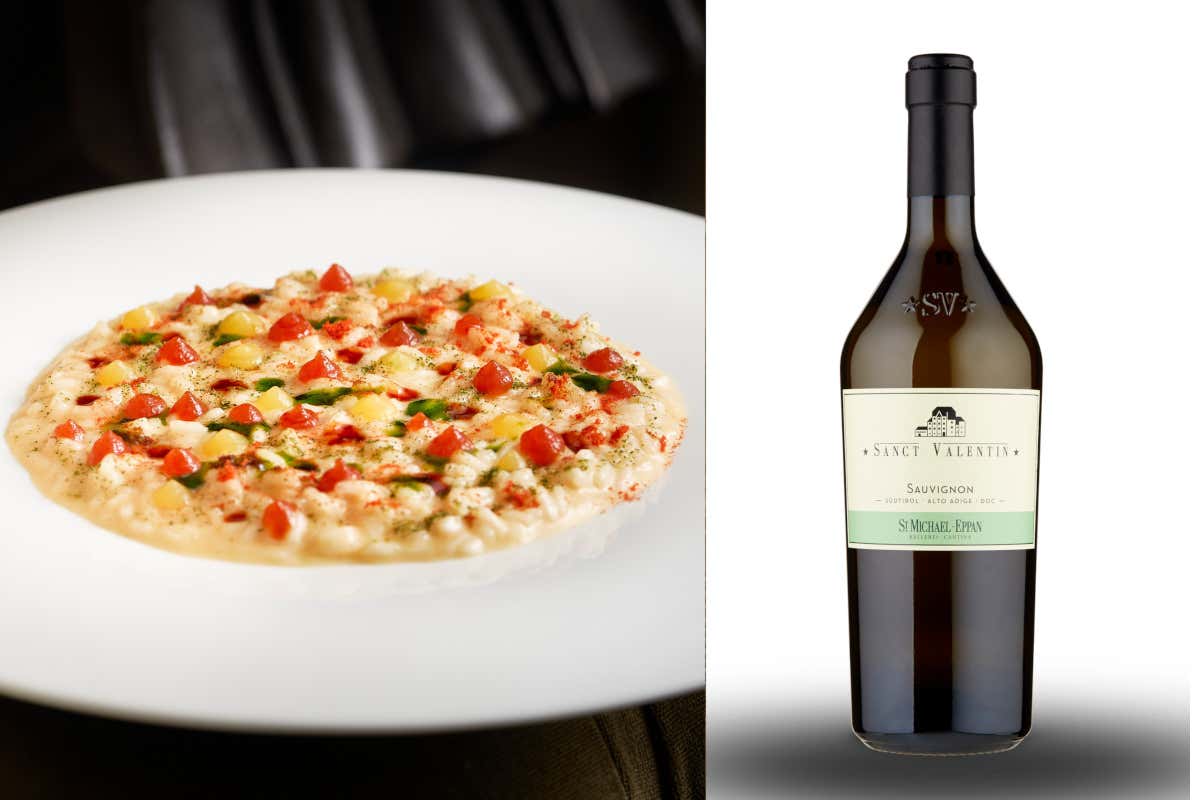 Il progetto, che mette assieme ricette e vini della realtà vitivinicola leader in Alto Adige, ha proposto l'abbinamento tra Sauvignon Sanct Valentin e Risotto ai pomodori e pecorino affinato in grotta di Paolo Lavezzini