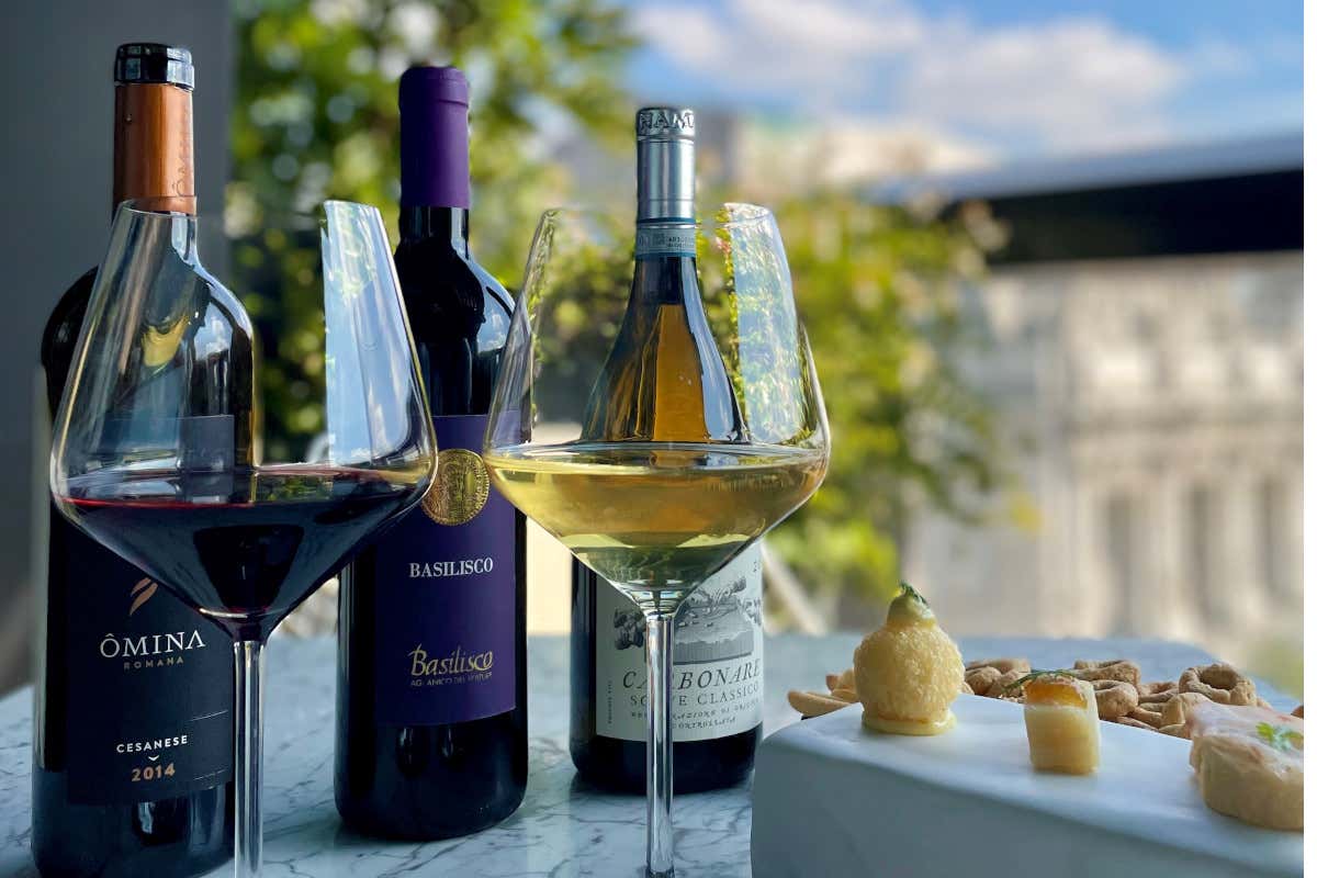 Alcuni vini vulcanici in degustazione sulla Terrazza Gallia