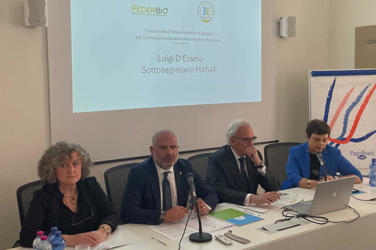 All'incontro, moderato dalla conduttrice tv Francesca Romana Barberini, sono intervenuti Maria Grazia Mammuccini, presidente Federbio, Riccardo Ricci Curbastro, presidente Equalitas e Luigi D’Eramo, sottosegretario del Masaf. I contenuti dell'intesa mirano all’impegno congiunto verso una corretta e trasparente comunicazione verso il consumatore, ma anche la formazione e l'assistenza alle imprese vitivinicole che vogliono integrare entrambi i modelli di gestione, Biologico ed Equalitas Vino Sostenibile e facilitare dove possibile, i controlli congiunti. L'obiettivo è anche quello di rafforzare i requisiti che identificano il biologico, quale risorsa strategica dell’Ue, nel disegno della gestione sostenibile del vino, su temi come la tracciabilità di prodotti e dei processi, la tutela della biodiversità e della salute di consumatori e operatori.