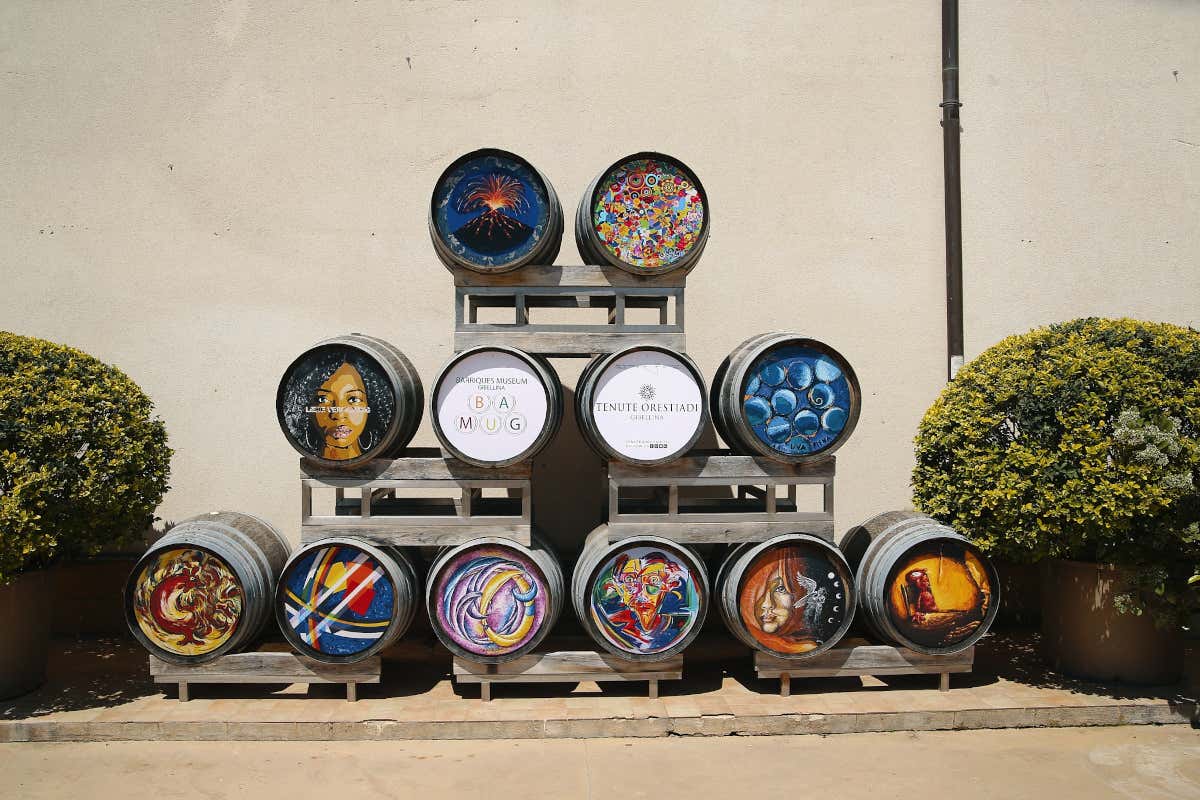 Un'esposizione esterna del Barrique Museum di Tenute Orestiadi
