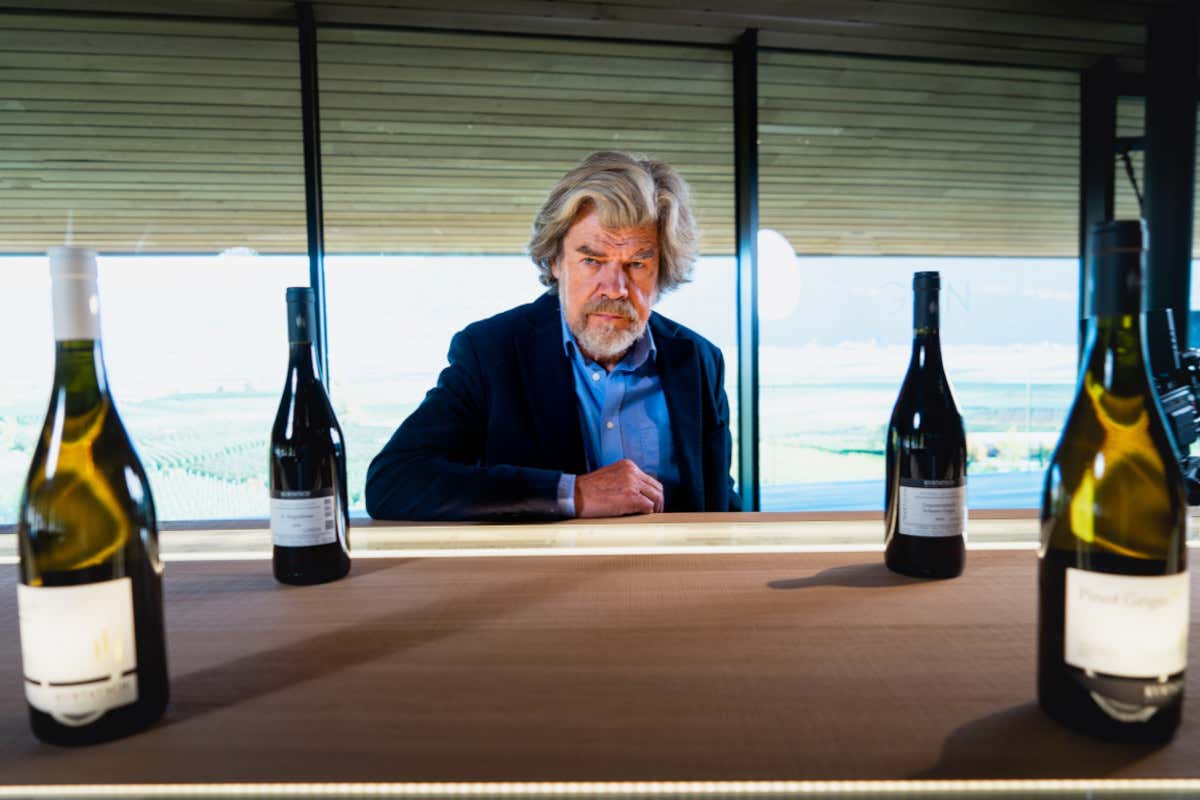 Reinhold Messner con i vini dell'Alto Adige (foto Victor Gabriel Hofer)