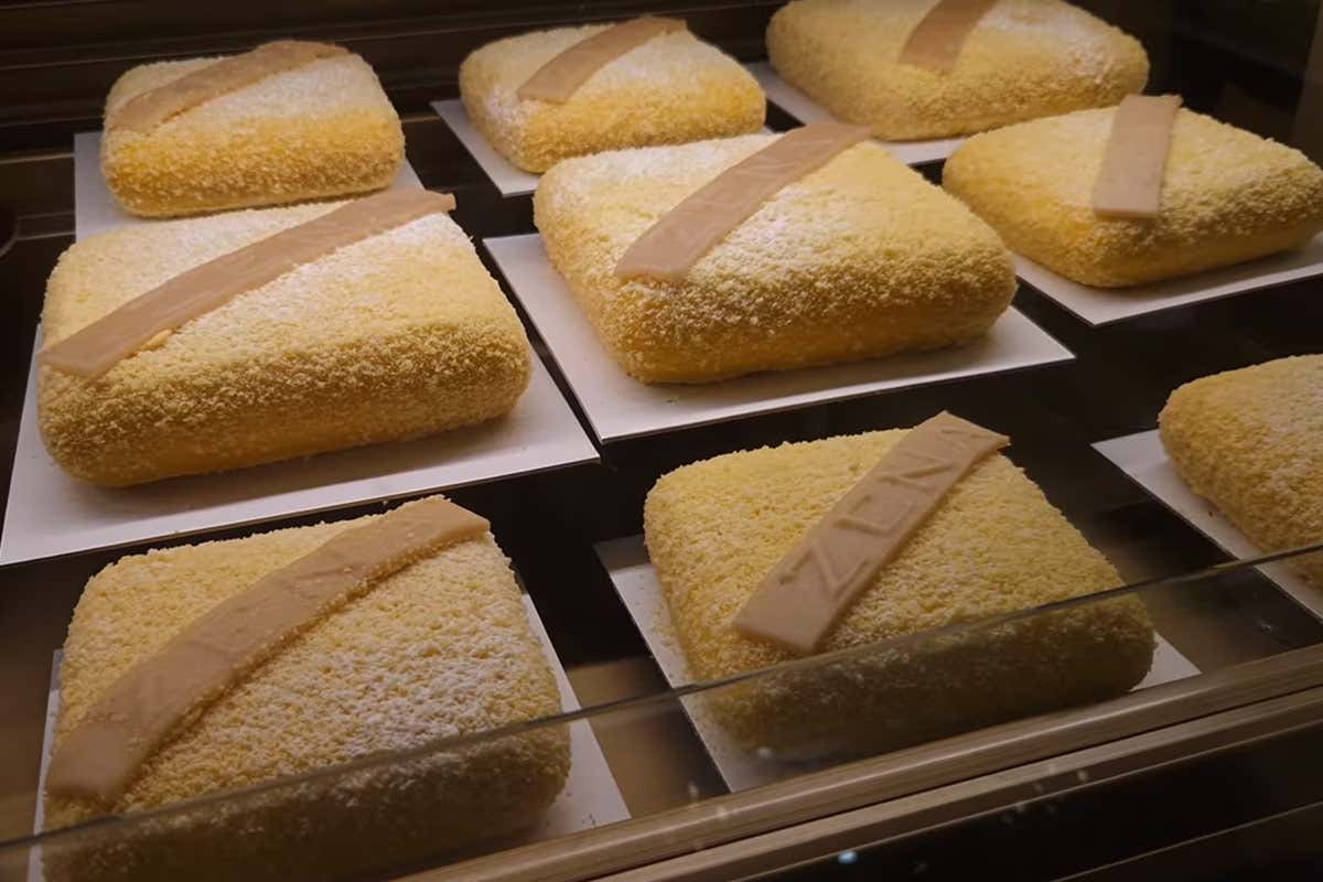 La composizione è essenziale e strutturata: pan di Spagna imbevuto con sciroppo al Marsala e crema mousseline, più leggera e raffinata rispetto a una tradizionale crema al burro. «È una torta bassa, ma strutturata», precisa Paquier. «L’unica modifica rispetto all’originale è una leggera riduzione della componente alcolica».
