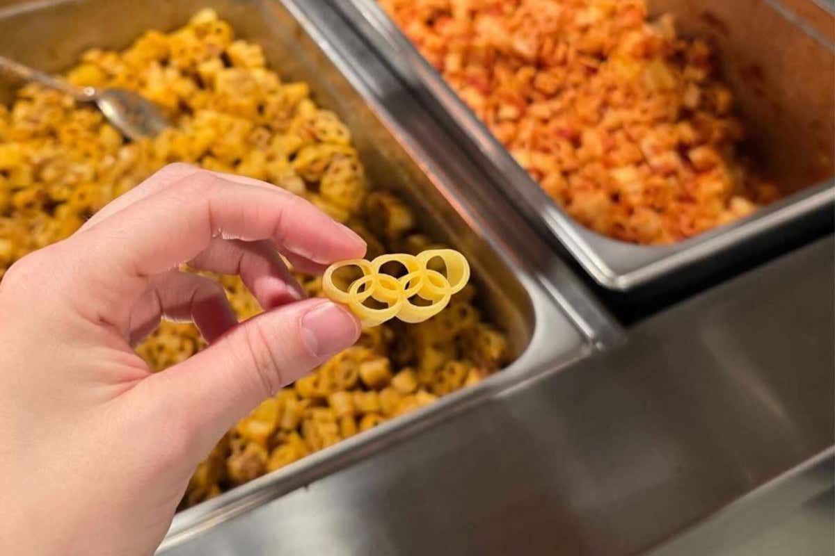Tra le immagini che arrivano dai Villaggi olimpici di Milano-Cortina 2026, oltre alle gare e agli allenamenti, circola anche quella di un piatto di pasta dalla forma insolita: cinque tubi intrecciati a riprodurre il simbolo dei Giochi. Un formato studiato per l’occasione e servito nei mesi di avvicinamento e durante le competizioni invernali ad atleti, stampa e ospiti. A prima vista ricorda un grande tubetto, ma osservando meglio si distinguono chiaramente i cinque anelli uniti tra loro. La pasta, realizzata con semola italiana, è stata prodotta in edizione limitata e non è destinata alla vendita.