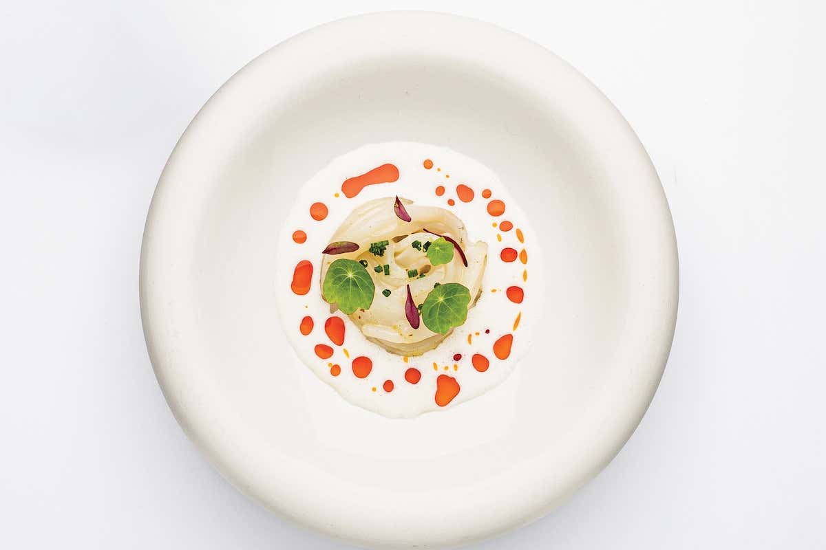 I menu degustazione - Istinto, Passione e Coraggio - incarnano l’anima del ristorante, proiettando a tavola l’identità della brigata attraverso accostamenti audaci e una ricerca tecnica incessante. Istinto prevede quattro portate vegetariane, dove i vegetali di stagione vengono lavorati con ingredienti da tutto il mondo, mentre Passione raccoglie le cinque portate "del cuore" che mostrano il carattere distintivo della cucina, come la seppia marinata senape e miele con beurre blanc e olio all'nduja. All'interno di questo percorso in particolare è possibile aggiungere uno dei grandi "best of" di Trattoria, come la Linguina, conchigliacei e pan crusco.