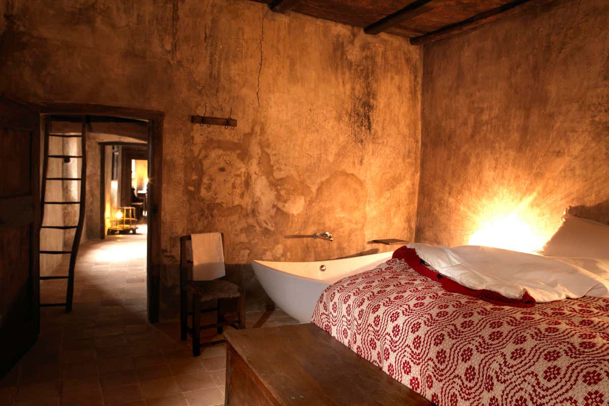Una stanza dell'albergo diffuso nel borgo, dal sapore antico ma dai dettagli moderni