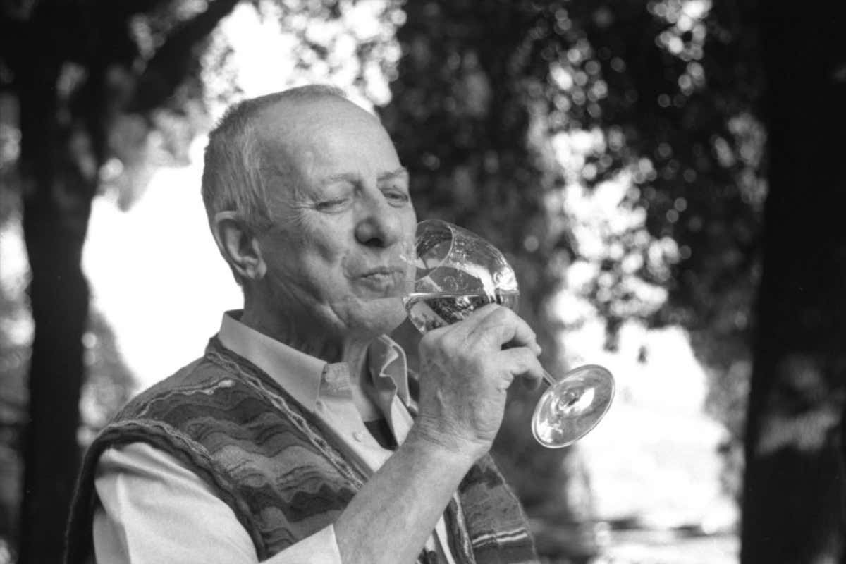 Portatore di un carattere molto forte, riuscì anche a scontrarsi con Giorgio, altro carattere fortissimo, non ricordo nemmeno perché, ma, come tutto col tempo si valuta meglio da lontano, tornò felice a Torgiano anni dopo. E sempre con quel suo fare affascinante, i suoi neologismi, le sue armi colte, poetiche, stimolanti. Giorgio era scomparso da poco, ma ebbe enorme piacere di conoscere la nostra evoluzione soffermandosi su ogni particolare, rivolgendo stima profonda a lui e a mia madre. Oggi che questi mostri sacri non sono più tra noi, gli siamo profondamente grati per aver tracciato il solco dove noi, delle successive generazioni, continuiamo a coltivare l’amore per la conoscenza intorno al vino e alla sua cultura».