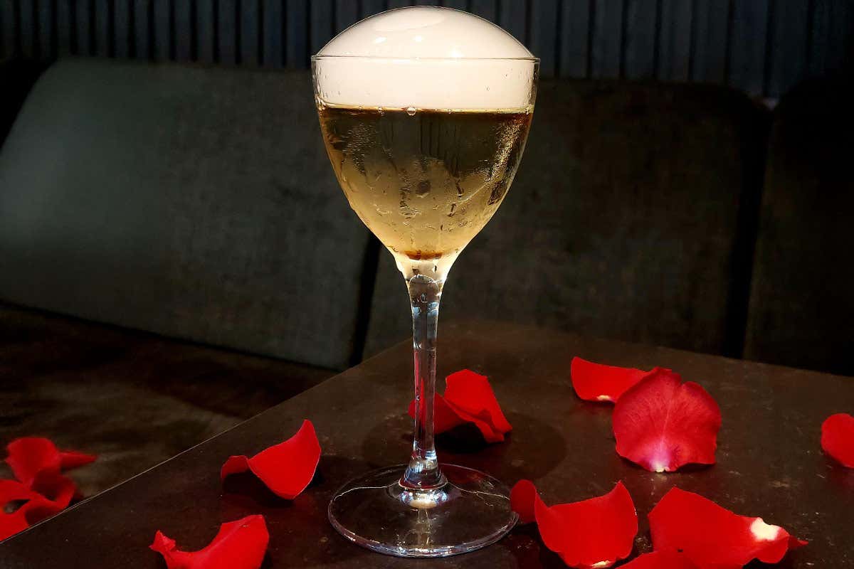 La tecnica è quella classica dello stirring in mixing glass, con diluizione controllata per ottenere setosità e pulizia gustativa. Il garnish, una bolla alla banana, aggiunge un elemento scenografico e olfattivo che anticipa l’assaggio. Un cocktail strutturato, elegante e narrativo, pensato per un brindisi romantico ma non convenzionale.