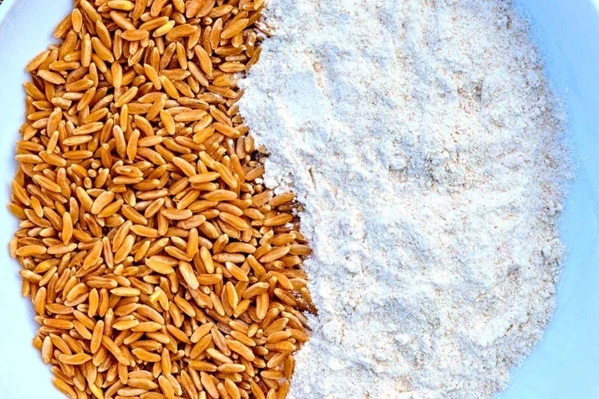 - 100 g di farina di grano khorasan a marchio KAMUT®