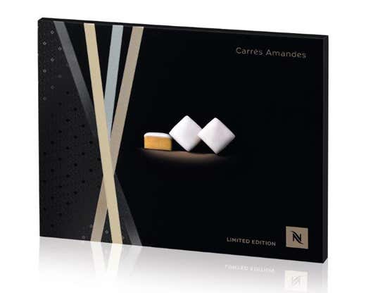 Carrés Amande: carrés Amande è l'abbinamento perfetto per esaltare l'esperienza di gusto Nespresso: una confezione regalo con dolcetti a base di mandorle e frutta candita dal sapore delicato. Prezzo: 10 euro.
