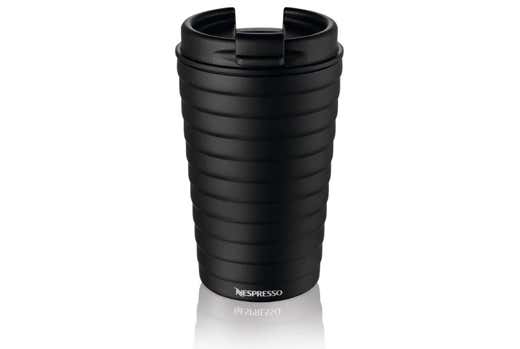 Tazza da viaggio compatta Touch: perfetta per gli uomini d'affari più impegnati, questa tazza da viaggio dal design contemporaneo non sfigura nemmeno con gli outfit più formali. Ideale per due caffè Lungo, la tazza a doppia parete con finitura nera opaca è una compagna di viaggio affidabile, in grado di mantenere bevande calde e fredde alla giusta temperatura. Prezzo: 18 euro.