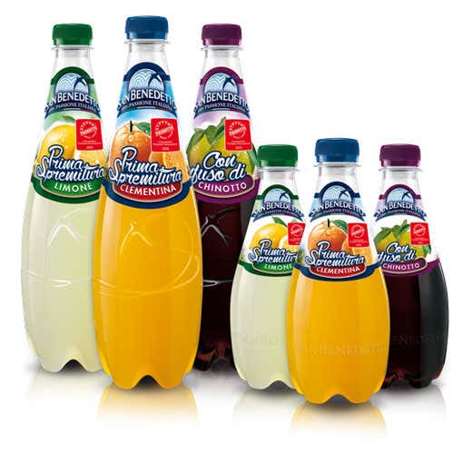 Completa il tris vincente l’innovativa gamma di bibite gassate Prima Spremitura San Benedetto a base di soli agrumi italiani selezionati per una straordinaria esperienza di gusto tutta da vivere. Una succulenta novità, nei gusti Clementina e Limone, a base di succo di prima spremitura. La gamma si completa con il gusto Chinotto, sapientemente preparato con infuso di questo frutto. Con Prima Spremitura, San Benedetto riscopre i valori più veri della tradizione italiana, fiore all’occhiello dell’azienda: Limone, piacere autentico della terra del sole, è fresco, leggero, dall’aroma intenso e profondamente dissetante: gioia di una bontà naturale e verace; Clementina, sapore genuino della nostra tradizione è dolce e brillante, straordinariamente pieno e rinfrescante, simbolo di un gusto sincero e tipicamente italiano.