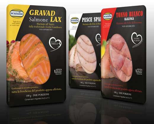 Da queste esigenze è nata la linea “I marinati” di Scandia, gustose fette di pesce spada e tonno bianco alalunga marinate con erbe di Provenza. Un prodotto che non subisce alcun processo di affumicatura ma una semplice marinatura con un’esclusiva tecnologia a secco sottovuoto che permette di ottenere un prodotto dal gusto più fresco e delicato rispetto alla tradizionale tecnica della marinatura in salamoia. Inoltre, la mancata aggiunta di additivi o conservanti, ne fanno dei prodotti genuini ideali anche nelle diete ipocaloriche. Disponibili affettati e conservati in vaschette da 100 g ad atmosfera protetta.
