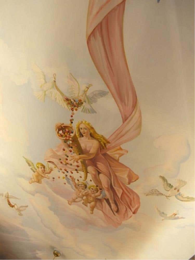 Rappresenta la musa ispiratrice della dolcezza, una giovane donna con la cornucopia, simbolo dell’abbondanza, piena di confetti e fruttini, accanto le colombe, immagine presente un tempo sulle loro confezioni che vanno a rifornirsi nel laboratorio e tornano con le reti colme di dolcezze, passando davanti a Castel Del Monte. Per ricordare che Andria non è solo conosciuta per il maniero federiciano ma anche come il “paese dei confetti”.