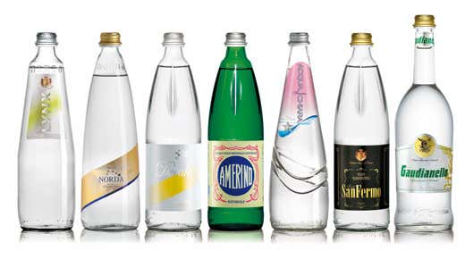Contribuiscono a questo “mood” le originali (e tutt’ora uniche sul mercato) etichette oro e argento, applicate in diagonale sul corpo bottiglia e dove la terminologia delle referenze richiama il mondo del vino; Ferma (naturale) e Mossa (frizzante). Indiscutibile la qualità dell’acqua: si tratta infatti della Fonte Daggio, oligominerale tra le più alte d’Europa (1.935 m slm), con un residuo fisso di soli 60 mg/l, imbottigliata nello storico stabilimento Norda di Primaluna (Valsassina, Lecco).