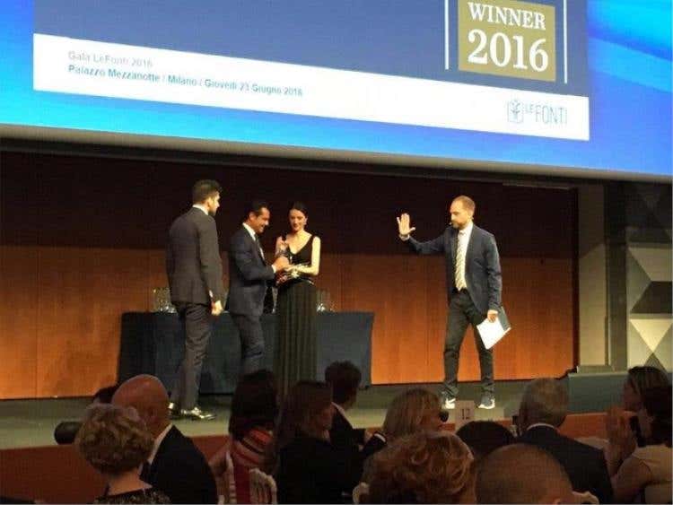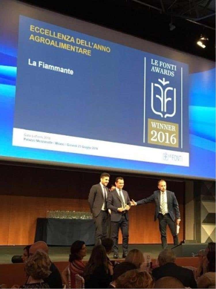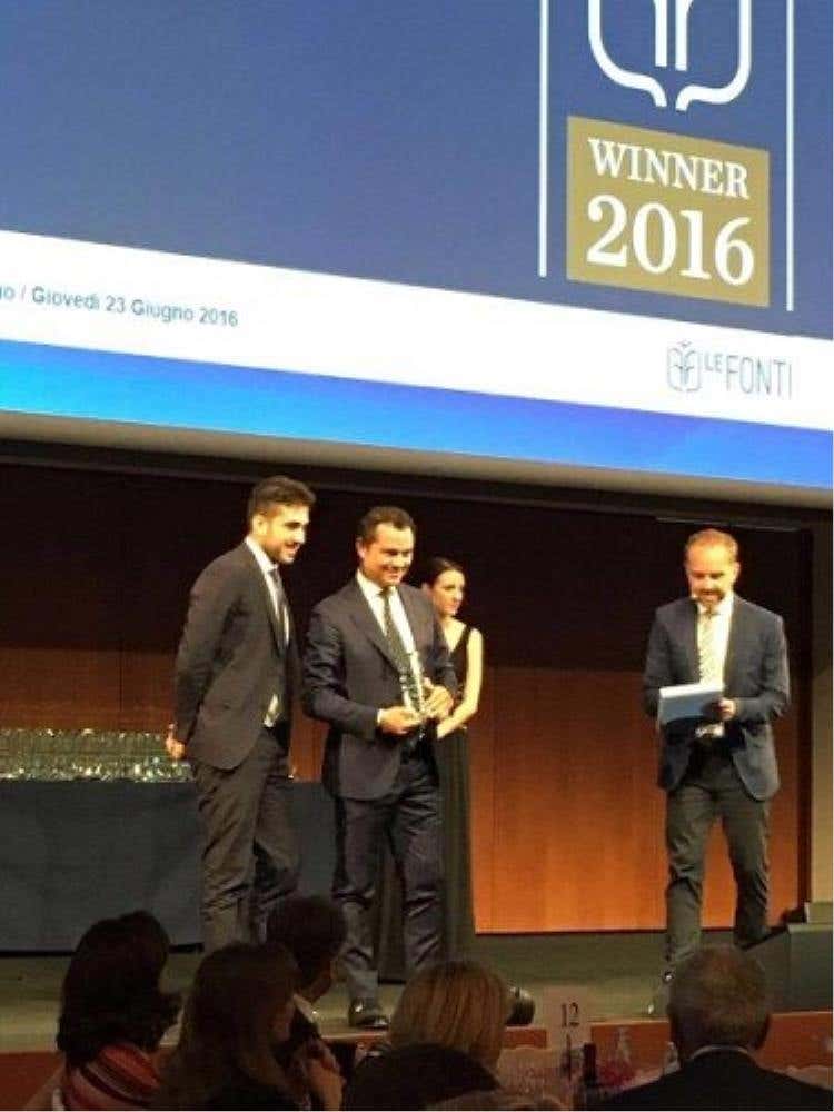 Premio internazionale Le Fonti per la categoria “Eccellenza agroalimentare italiana”, oltre alla candidatura come “Imprenditore dell’anno”. Per individuare le eccellenze dei Le Fonti Awards, vengono presi in considerazione rendimenti, operazioni e altri fattori relativi a un arco temporale di 12 mesi (gennaio-dicembre 2015).