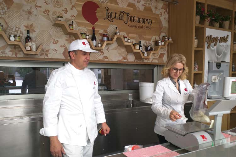 Dimensione ed equipaggiamento del plesso, di esemplare candore e pulizia, supportano questa vision di Luca. Conduzione familiare, si diceva. Sì, Luca nella funzione di direttore generale, a supervisione di tutto, occhio particolare ai rapporti con la clientela (mercato domestico 80%, estero 20%), il figlio Antonino, terza generazione, in capo alla produzione (400kg di Mozzarella di Bufala Campana Dop al giorno), la moglie Angela in capo all'accorta gestione del bellissimo Punto Vendita. È negozio, inserito al fronte del caseificio, che merita visita. Innovativo e di certo vincente il format.