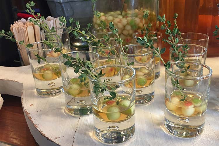 Ingredienti (per 20 Mini-drink Marlene): 1 kg di mele Marlene Red Delicious; 1 kg di mele Marlene Golden Delicious; 5 rametti di timo; Prosecco q.b.