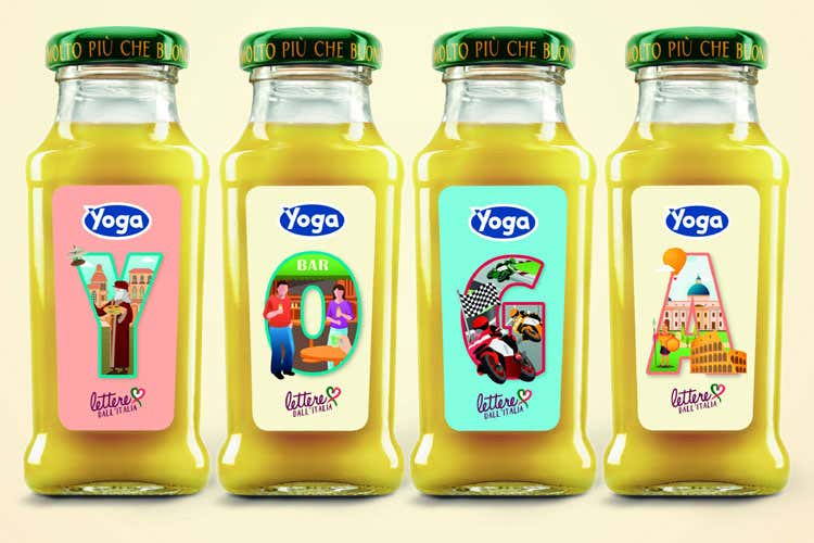 La nuova edizione dei succhi di frutta Yoga - brand di punta del Gruppo Conserve Italia - a giorni invaderà i bar di tutto il territorio nazionale. Con Yoga “Lettere dall’Italia” vengono proposte 26 etichette diverse, uniche e originali che compongono un alfabeto iconografico con i simboli tipici e di eccezionale bellezza dell’Italia. Si tratta di un’edizione limitata di succhi di frutta alla pera in bottiglia trasparente da 200 ml.