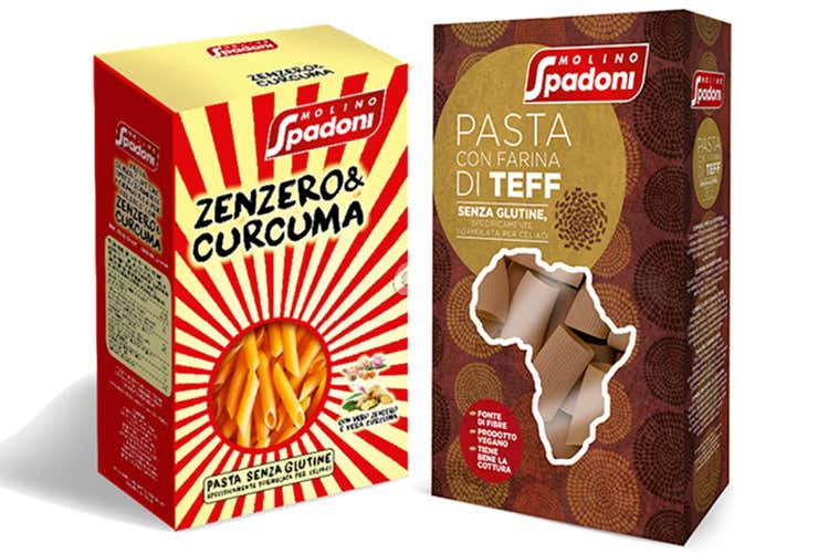 Molino Spadoni mette la sua esperienza nella lavorazione delle farine anche al servizio del senza glutine, non solo nei panificati, ma anche nel mondo della pasta. L’azienda, infatti, dopo l'ampliamento dello stabilimento di Forlì (oggi dedicato esclusivamente a quest'ultimo segmento di mercato), propone due innovative referenze di questa tipologia di prodotto: la pasta al Teff e la pasta Zenzero e Curcuma.