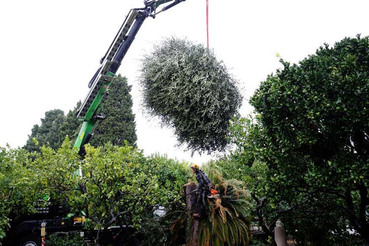 L'ulivo abbattuto a Mentone (La Xylella in Costa AzzurraÈ allarme anche in Liguria)