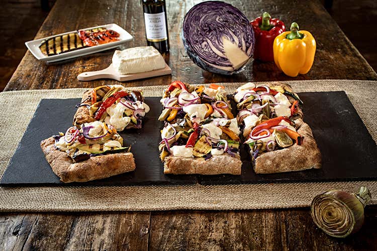 Le varianti disponibili sono classica con farina bianca, con farina tipo 2 macinata a pietra e ai 7 cereali. Oltre a queste c’è anche la Pizza alla Pala Margherita, con mozzarella di latte italiano di alta qualità senza lattosio e pomodoro 100% italiano, disponibile nel formato 30x40 cm.