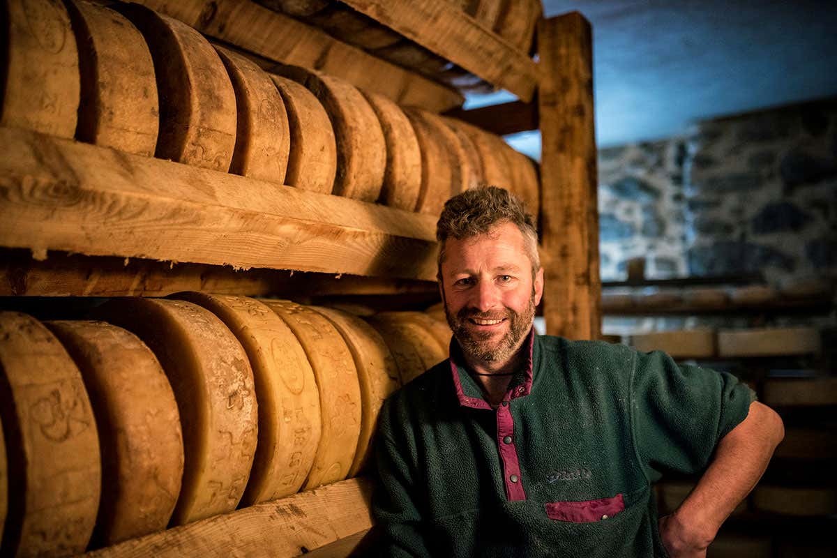 Ottiene il latte dalle sue sessanta mucche brune alpine e altre razze tipiche di montagna, lasciate libere per metà dell’anno che mangiano erbe in estate, fieno locale con aggiunta di erba medica, semi di lino e mais d’inverno. L’uso del latte crudo permette di trasmettere al Silter aromi affascinanti e ogni volta diversi: dal timo serpillo, alle erbe officinali fino al gusto amaro del tarassaco. Merito di questo tipo di caseificazione: il latte lavorato a temperatura ambiente preserva più proteine, calcio e vitamine. Resta quindi vivo e naturale, con i batteri “buoni” che possono proseguire il loro lavoro e aumentare il benessere di chi prova questo formaggio così prezioso.
