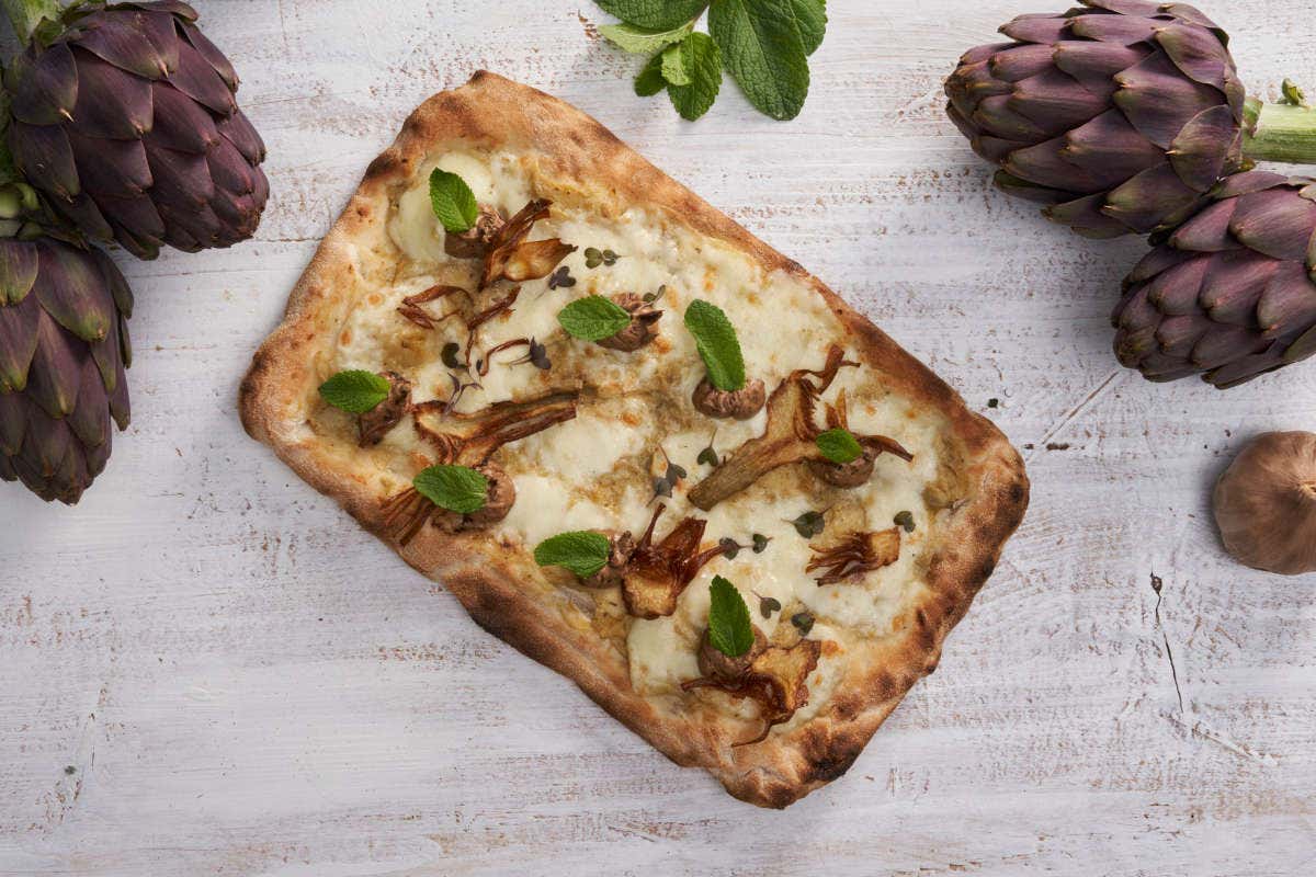 Pizza in pala con Gransalsa di cuori di carciofo e Carciofi alla Giudia